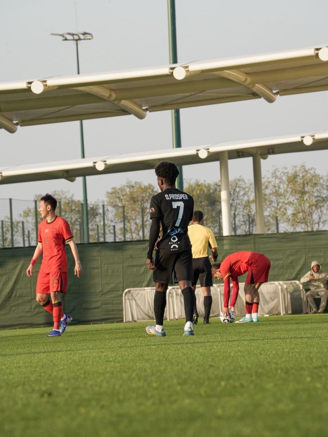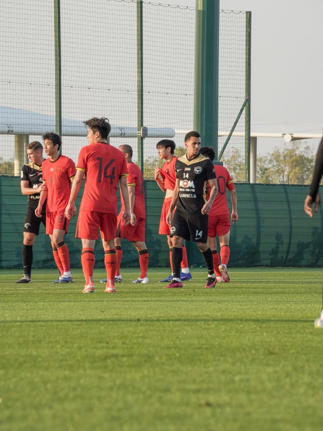 热身赛:国足2-0阿联酋第三级别球队猎鹰,张玉宁、林良铭破门